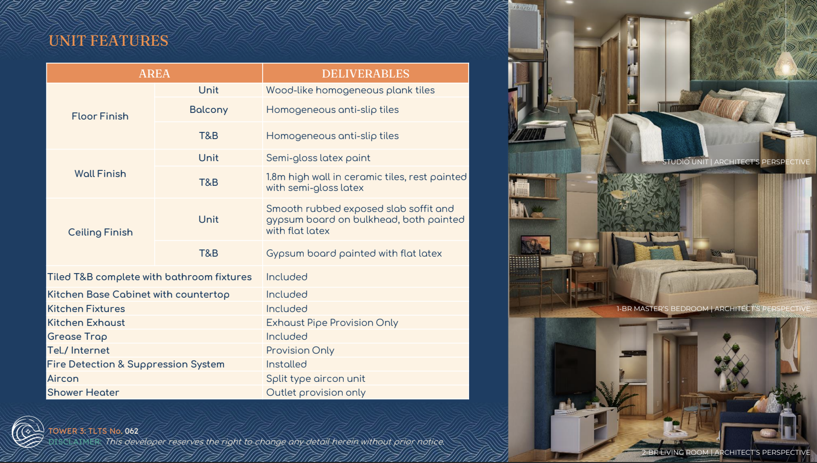 • Investment range may vary per floor and based on the unit orientation.